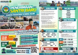Telah dibuka penerimaan santri baru pondok pesantren Ta’mirul Islam kampus Solo dan Masaran tahun ajaran 2026-2027. Untuk lebih detil, silahkan cek media sosial kami, atau hubungi contact person yang tertera di brosur berikut ini. Barakallahu fiikum.